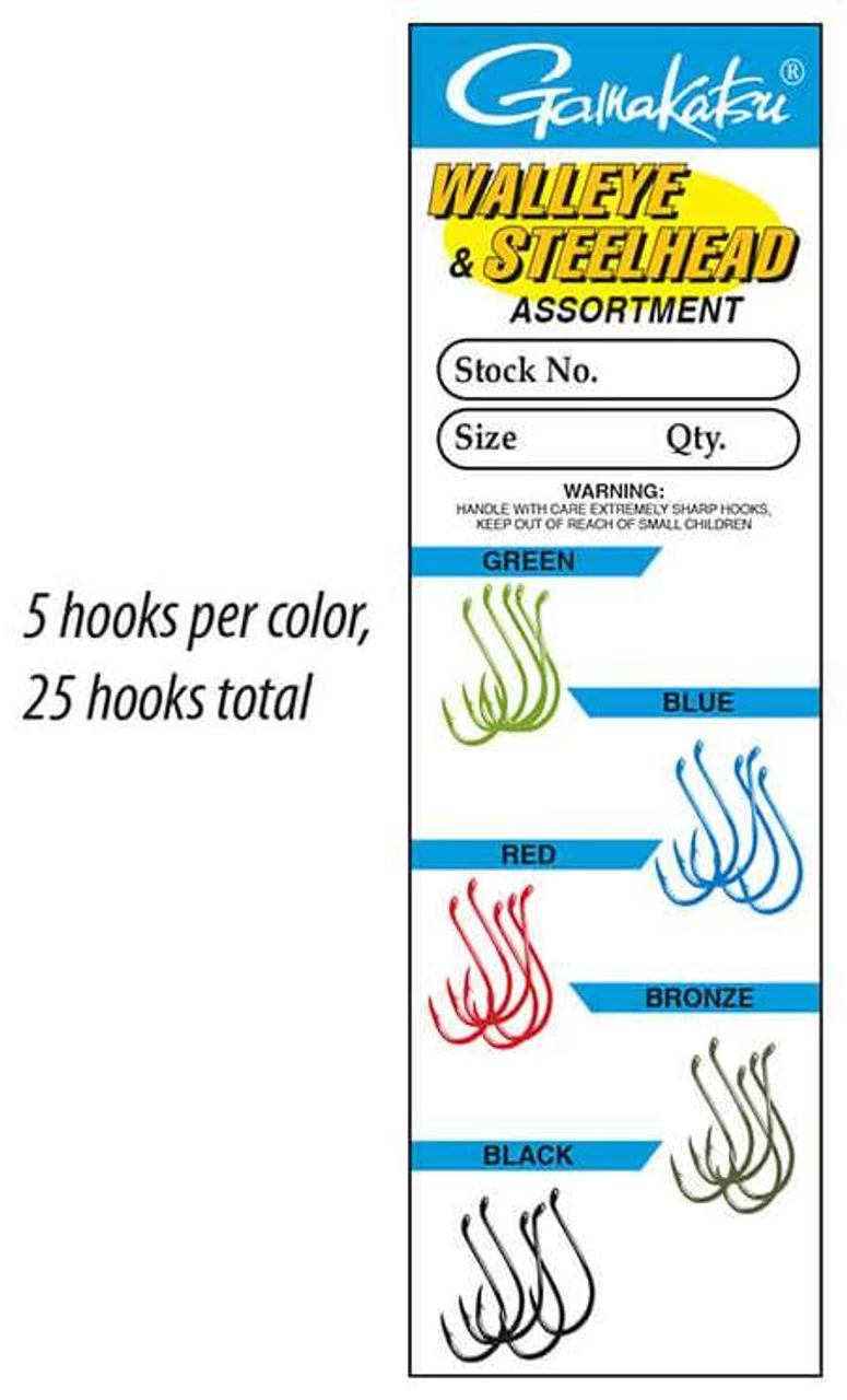 Finally, and perhaps most importantly, our sharpening process is the most modern in the world, and results in a perfectly conical point that is unequaled in sharpness. Gamakatsu’s revered steelhead and walleye Octopus Hooks in a 25 hook assortment of 5 different colors.