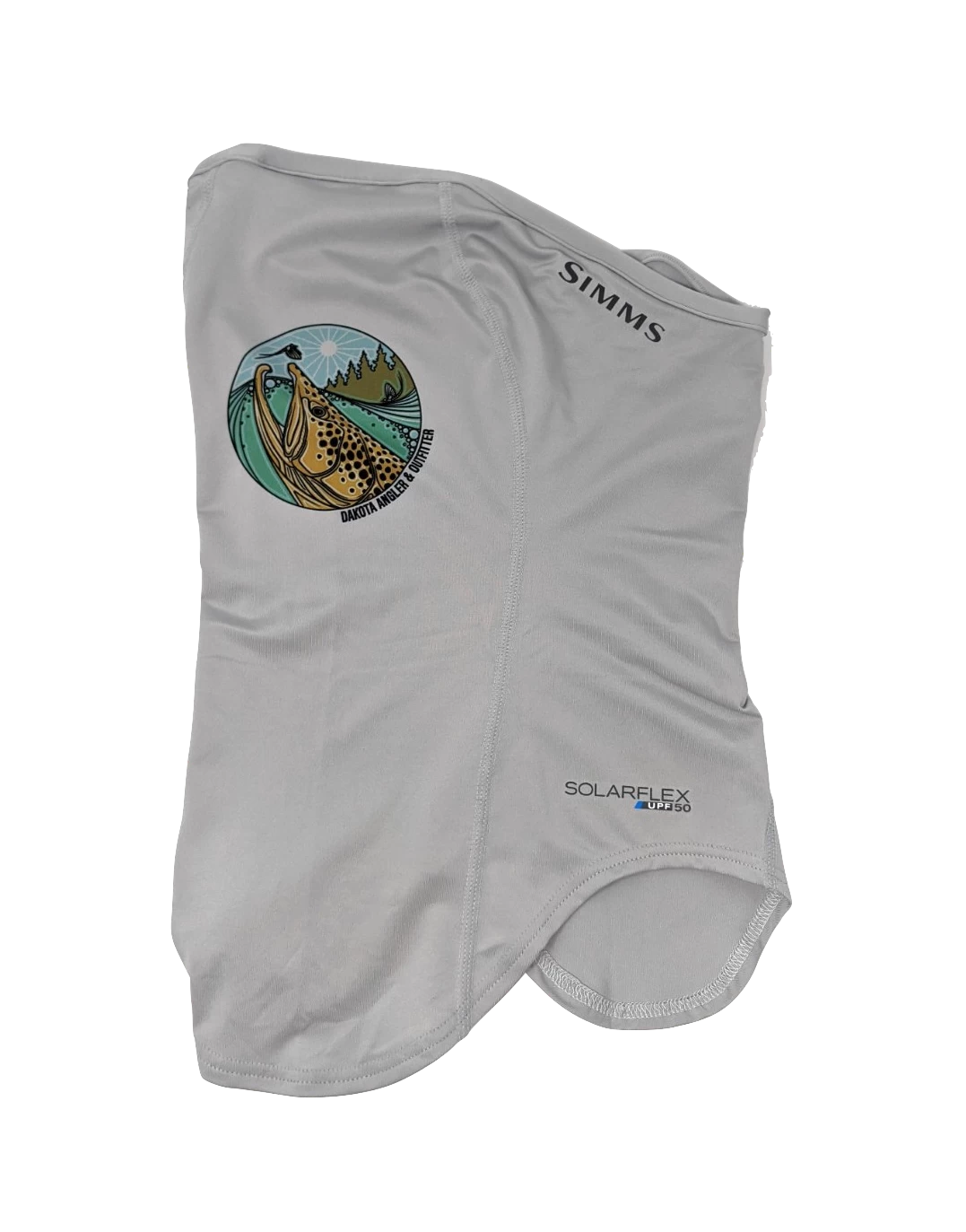 Dakota Angler & Outfitter logo featuring our Brown Trout Rise logo designed by Casey Underwood. Printed on a Simms Sungaiter.
